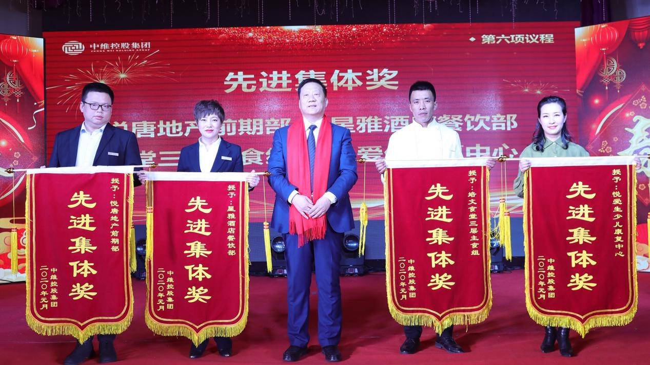 中維控股集團董事長郭秀忠發(fā)表重要講話。首先向一年來辛勤工作的全體員工表示衷心的感謝,向獲得2019年度先進榮譽的優(yōu)秀團隊及優(yōu)秀個人表示祝賀!對集團上下團結協作、攻堅克難,各方面的工作都取得了較好的成績表示肯定。2019年,是全面貫徹集團公司“整合蓄勢謀發(fā)展、凝心聚力抓管理”行動綱領的開局之年,集團董事會和各單位管理干部及員工,砥礪奮進、攻堅克難,為集團公司轉型發(fā)展、構筑與開拓嶄新的業(yè)務格局與篇章打下堅實的基礎。2020年是集團各個板塊全面發(fā)力并提升效益的目標年,希望全體員工明確目標、勇于擔當,在管理中發(fā)揮嚴、細、實的作風,嚴就是要嚴格管理、按制度辦事,細就是要注重細節(jié)、做到精益求精,實就是要提高執(zhí)行力,把各項工作落實到具體行動上。中維全體家人們將更加緊密團結、迎難而上,為實現個人價值夢想、全面完成年度各項任務指標、推動集團開創(chuàng)嶄新發(fā)展篇章而不懈奮斗!